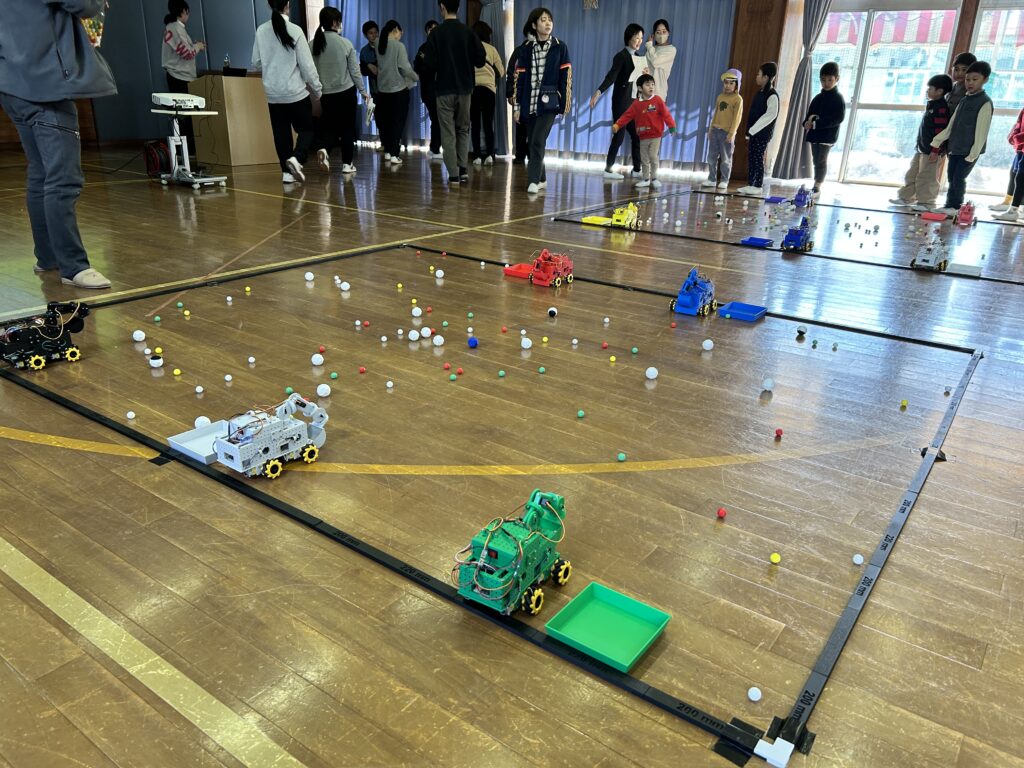 ロボットの操作に慣れたところでチームに分かれてボール集め対決をしました!ここでは園児だけでなく講師たちも一緒になって盛り上がります。
